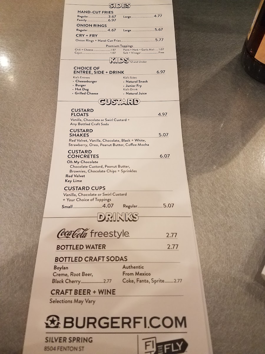 The drink selections, featuring Freestyle beverages and bottled options, make it easy to quench your thirst. At BurgerFi Silver Spring, every bite is an experience designed to please the palate and foster a sense of community.